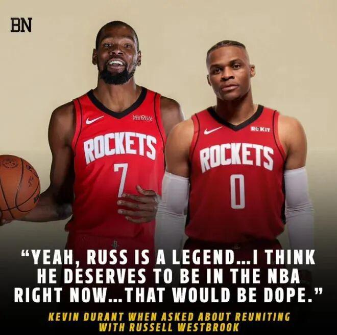 当然,更合适的还有火箭。 范乔丹没受伤前不考虑,赛季报销后还真可以考虑。杜兰特在播客节目上也聊起了威少和火箭的流言:“关于签下威斯布鲁克的讨论,从未传到我这里。”“通常这类事要是真的,动静会很大。但除了网上球迷的讨论,我没听到任何实质性消息,威斯布鲁克是传奇,我认为他现在理应留在NBA,也理应以自己想要的方式告别这个联盟。但这不是我能决定的。”阅读理解,请说出大哥的潜台词——我先来:火箭敢签威少我就不续约。
