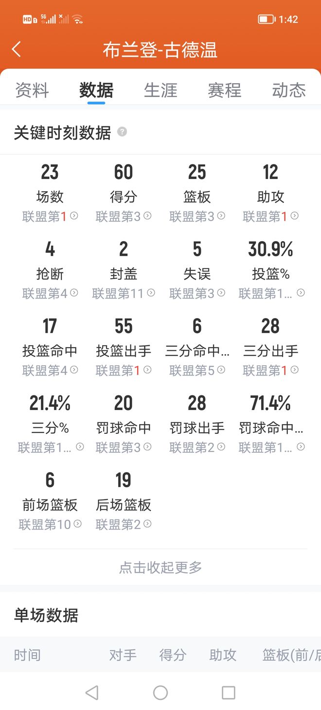 第二位:古德温身高1米85,体重81公斤,司职后卫,上赛季效力于山西男篮,新赛季所属上海男篮。古德温拥有一个大心脏,绝对的关键先生。数据统计,上赛季他有23场比赛打出关键数据,累计贡献60分的关键得分,25个关键篮板以及12个关键助攻。这四项数据均联盟前五水平。