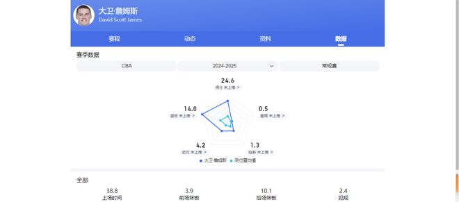 大卫詹姆斯完全是王俊杰的顶配版本,两人风格相似,但大卫的身体素质爆发力更好。他在天津男篮带着一群边缘球员,仍能打出场均24.6分14篮板4.2助攻的数据,这就是硬实力和职业态度的体现。